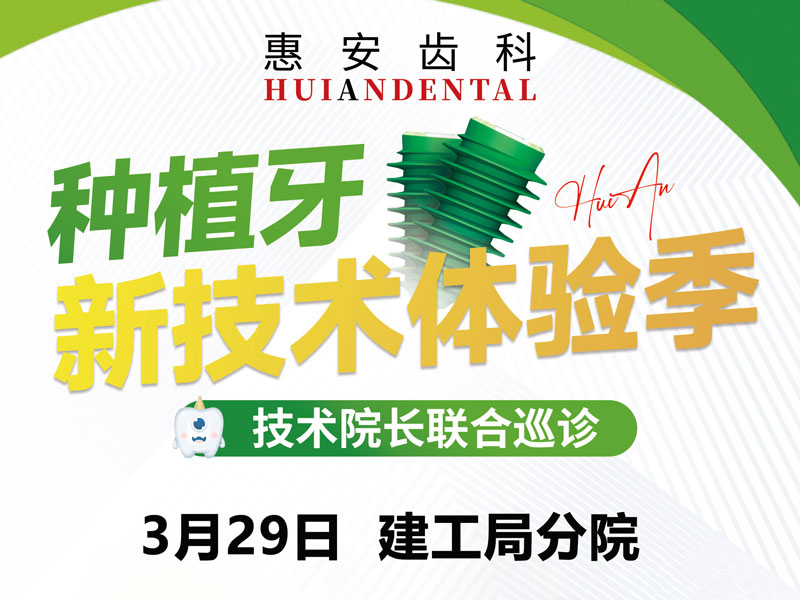 特大福利!惠安齿科种植牙新技术体验季将于3月29日在建工局分院重磅开启!本次“新技术体验季”的核心,是惠安齿科强大的专家团联合巡诊。您将有机会与多位在兰州种植牙领域享...